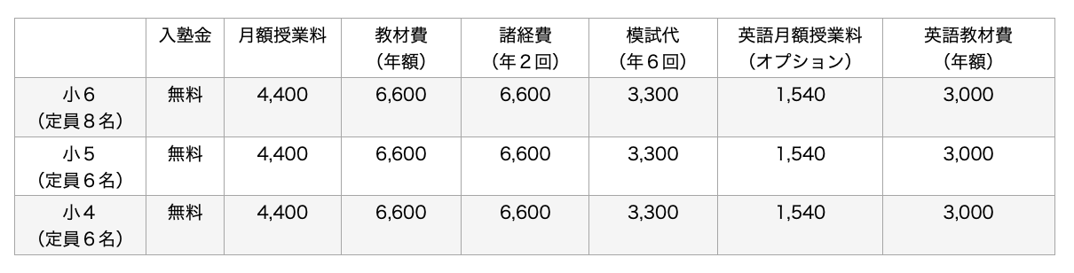※国語・算数授業料は2科目合わせて月額4400円です。